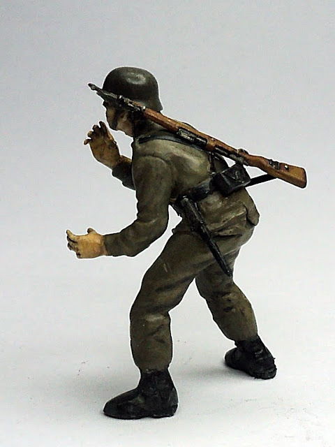 Voy a utilizar una figura multipose de Tamiya de un soldado alemán de la SGM que tenia montada, a la que tengo practicar algunas modificaciones para adaptarla al uniforme del Reglamento de Uniformidad. Enero 1943: