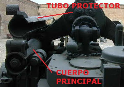 En la siguiente imagen se puede ver el tubo en su posición más retrasada al efectuar el disparo. No ha iniciado la recuperación pues tiene el cierre aún cerrado. Cuando el tubo vuelve a su posición por efecto del recuperador, el cierre queda en posición “abierto” para atacar otro proyectil.